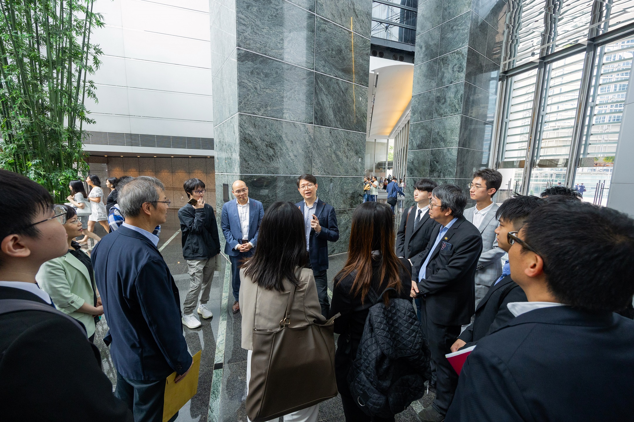 Students visit Three Garden Road, which recently became Hong Kong’s first “triple platinum” Grade A office property in the existing building certification category. On the visit, they learned how the property integrates sustainability into its business operations.