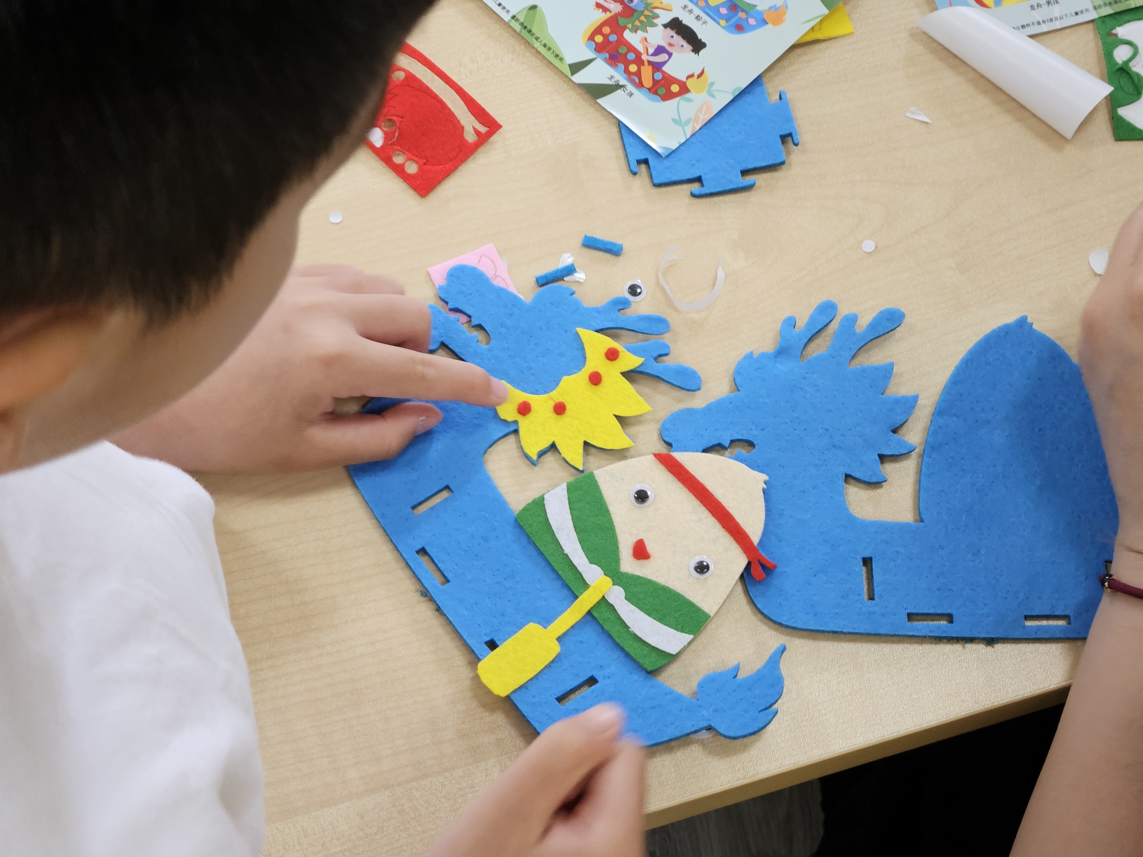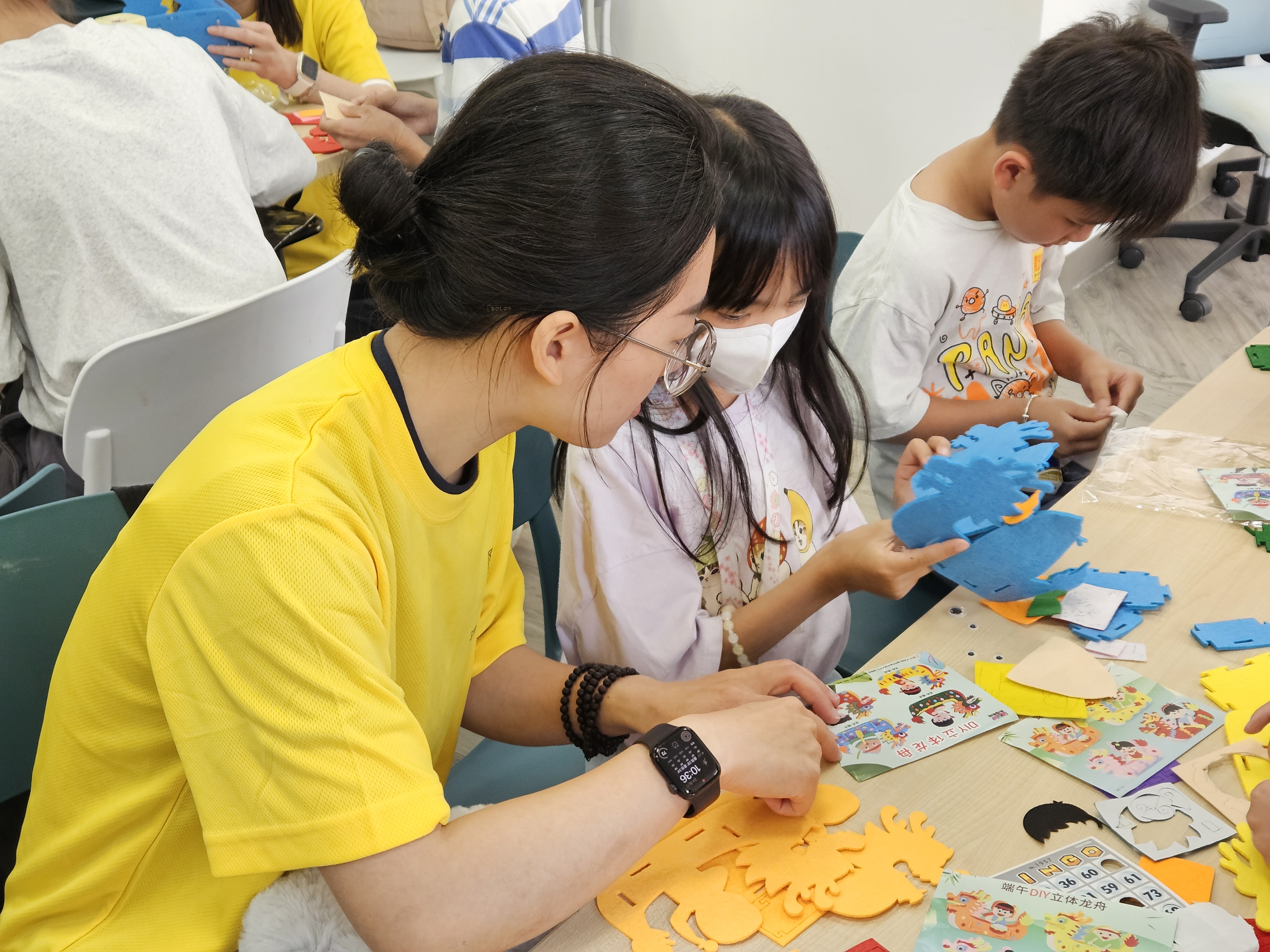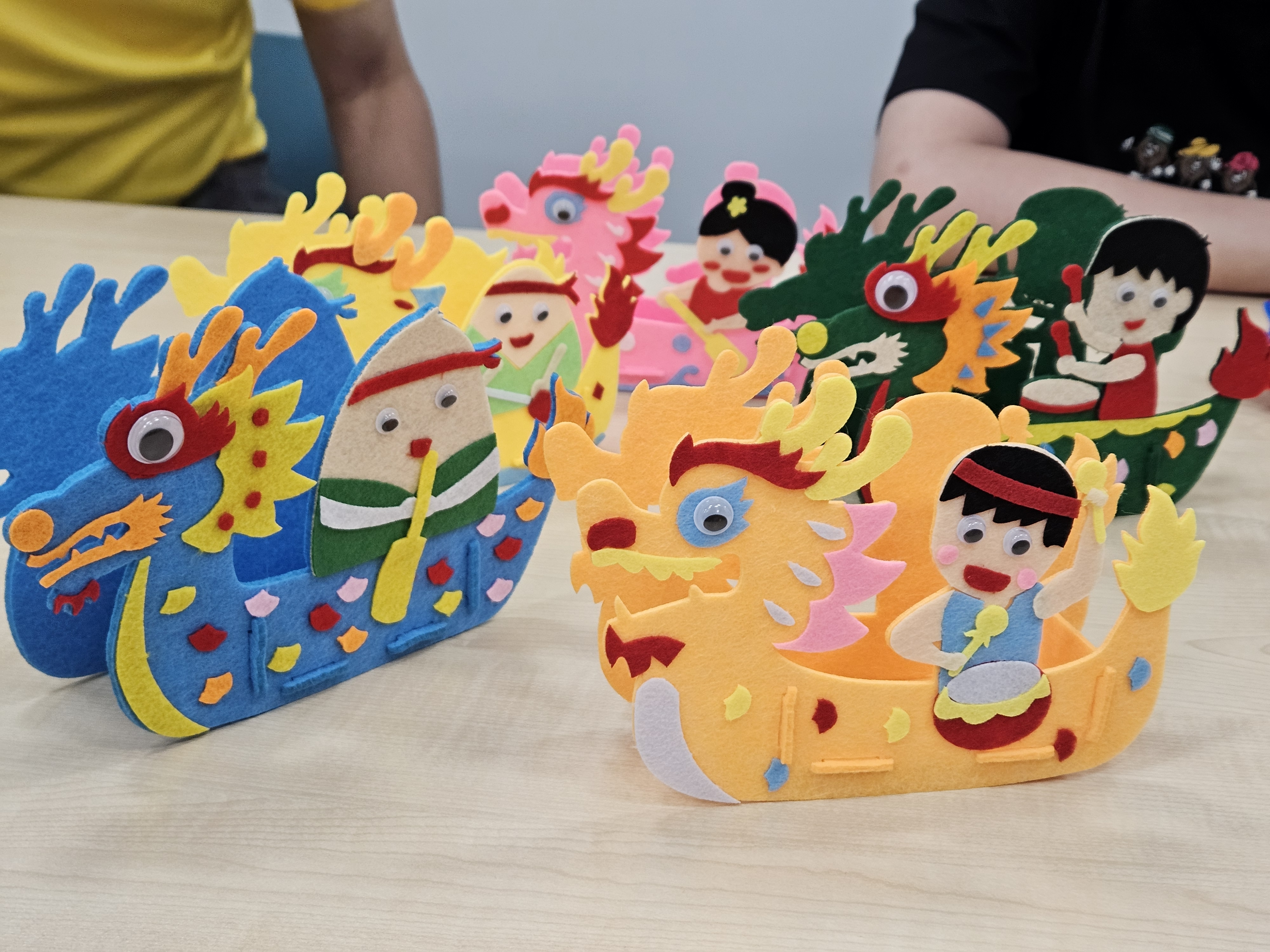 義工陪伴孩子玩遊戲並製作手工龍舟模型,集團亦捐贈200隻粽子與社區分享節日喜悅。